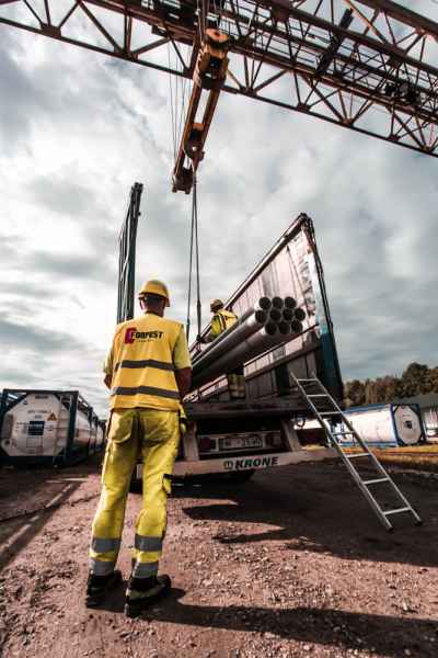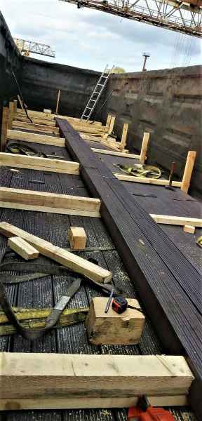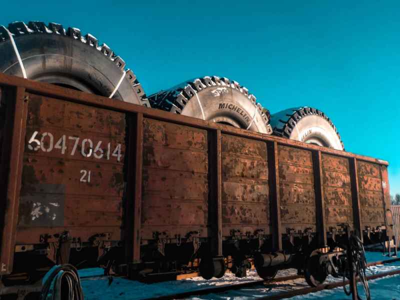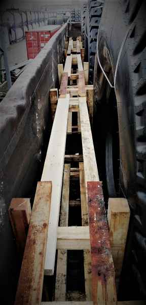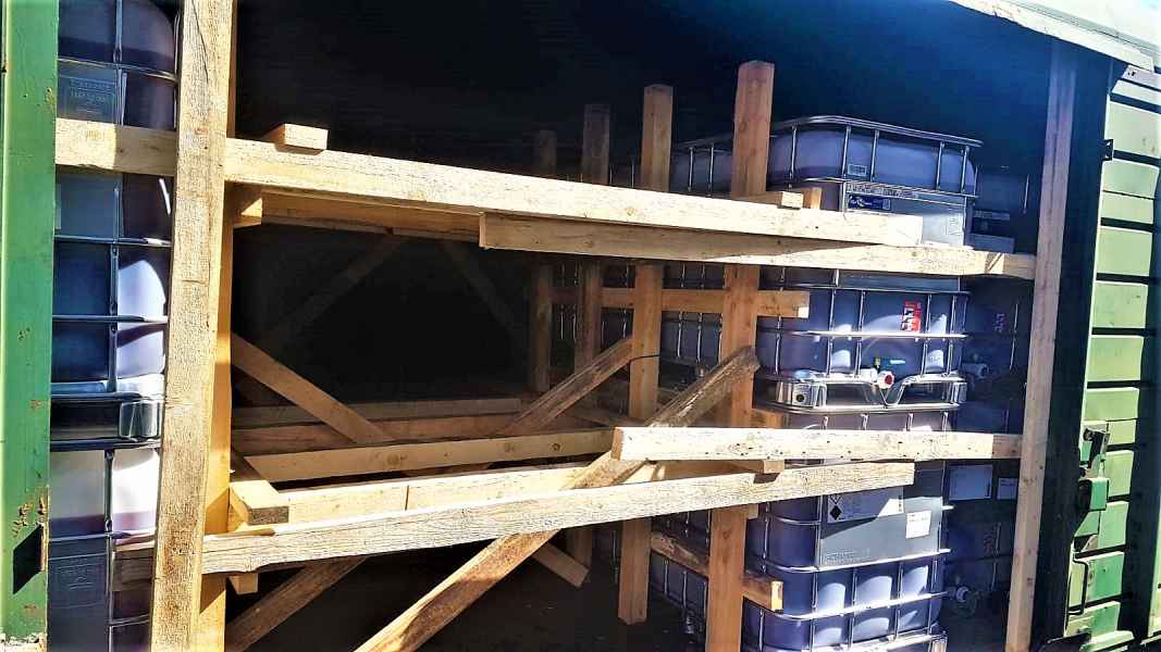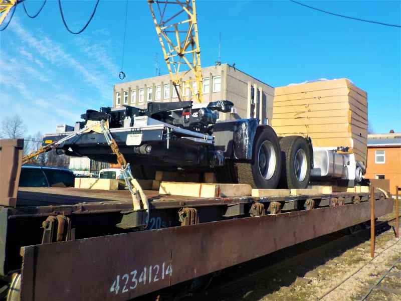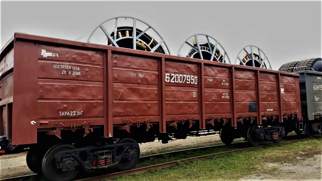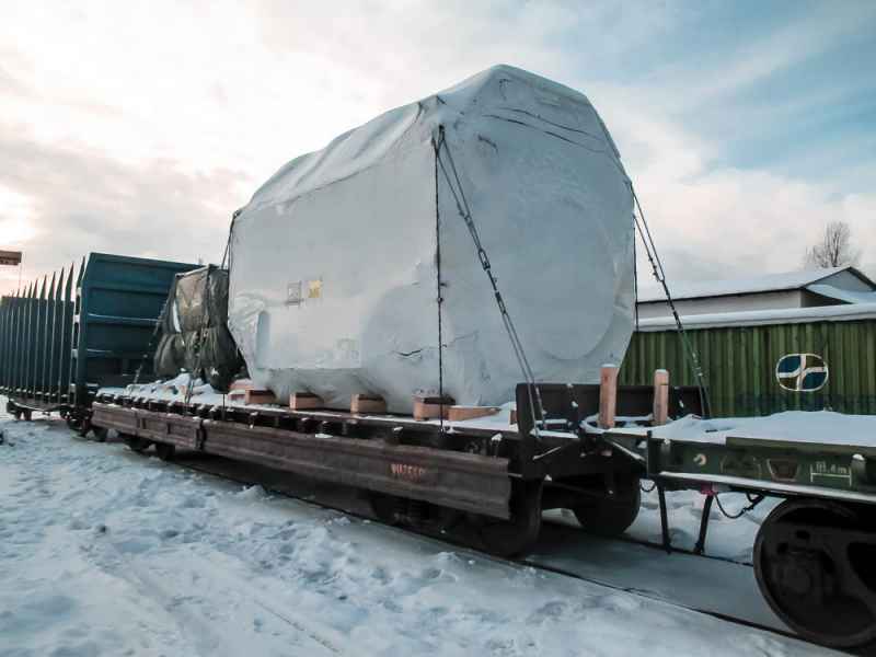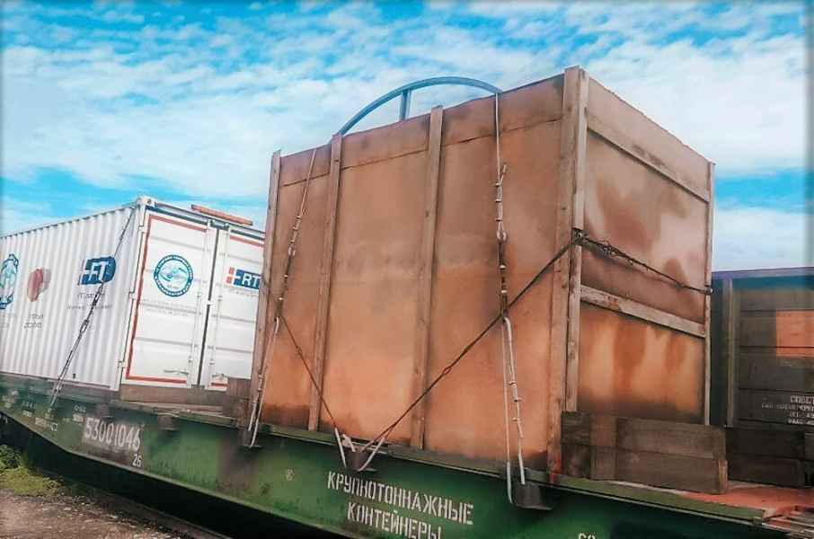 Cargo reloading and securing on a railway flat wagon