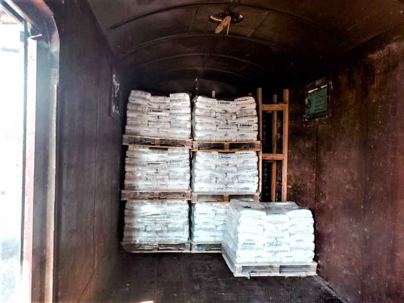 Cargo reloading and securing in a railway covered wagons